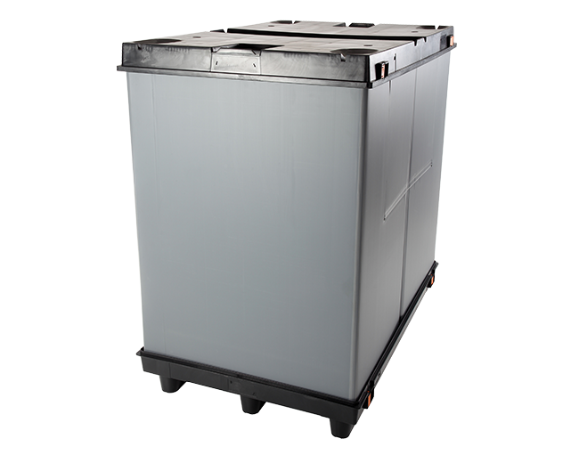Time-saving solution for warehousing and logistics: foldable, robust and completely pre-assembled. With permanently integrated side walls, easy handling and minimal volume when empty.